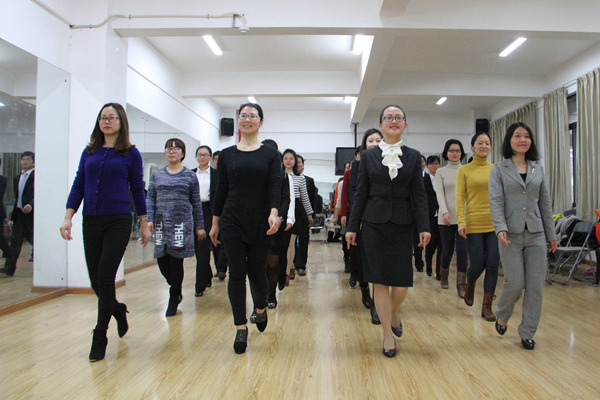 什么是礼仪?怎样进行形象设计?如何掌握岗位礼仪?……鲍娟老师结合高校教师的职业特点及大学生需具备的礼仪文化素养,运用大量的图片和生动的事例,向大家详细介绍了着装原则、色彩搭配、男女性职业装礼仪、公务活动接待礼仪、公务沟通规范、中西方宴请礼仪等。陈丽梅老师重点对学员进行了形体训练,对学员的站姿、坐姿、走姿、蹲姿、手势等进行了现场示范与指导,并通过丰富的模拟情景训练,让学员们更加熟练的掌握各类礼仪的要领。