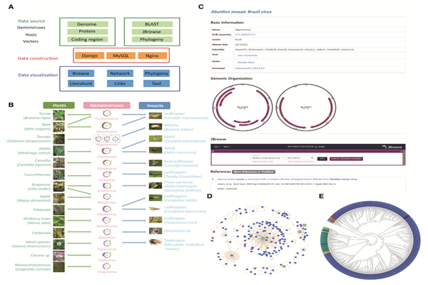 3)“Phylogeny”:基于双生病毒全基因组序列比对,构建了目前最为全面的双生病毒科的系统发育关系;
