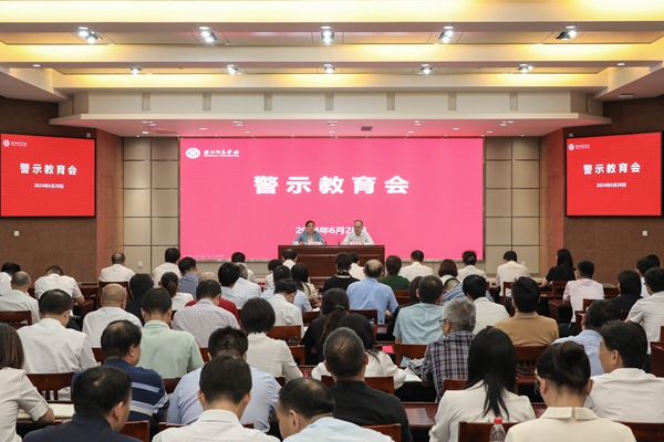 6月28日下午,学校召开警示教育会。会议传达学习习近平总书记关于全面加强党的纪律建设的重要论述精神,认真贯彻全省、全市警示教育会部署要求,通过以案说德、以案说纪、以案说法、以案说责,持续推动党纪学习教育走深走实、全面从严治党向纵深发展。校党委书记许慧霞主持会议并讲话,校党委委员、纪委书记、监察专员任伟海通报校内外违纪违法典型案例并作剖析。