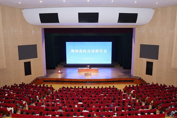 11月20日下午,市委书记陈浩以“我和我的湖州”为题,来校为在湖高校师生代表作宣讲报告。副市长石一婷,湖州学院党委书记金波,湖州职院党委书记金淦英,市委秘书长宋波,市直属有关部门主要负责人,湖州学院、湖州职院相关校领导,校领导班子成员、中层干部、科级干部,以及三所在湖高校师生代表共1500余人参加宣讲报告会。校党委书记许慧霞主持。