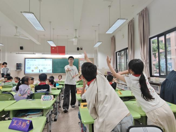 启动仪式结束后,“青·匠”宣讲团成员给常溪小学二年级小朋友带来首堂科普课《磁铁的奇妙之旅》。宣讲团成员利用精心准备的教具,生动有趣地进行讲解,通过互动问答、实验操作等方式,将理论知识与趣味实践相结合,让小朋友们在动手实践中感受科学魅力,课堂气氛十分活跃。